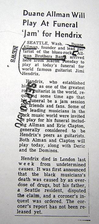 Duane did not attend, neither did Clapton. They had planned to, but Clapton was distraught, and Duane stayed behind in Miami. That day they recorded an acoustic version of “Mean Old World” with Luther’s dad Jim Dickinson producing. The funeral trip wasn’t real, but the press release does appear to be.