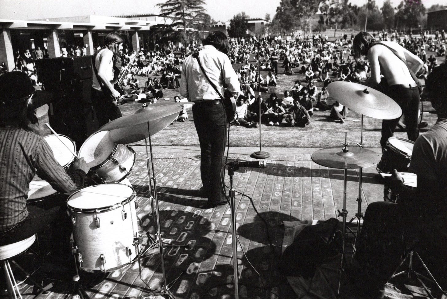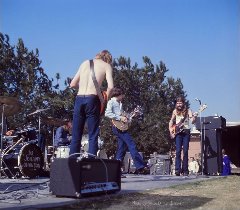 This is the Allman Brothers in January of 1970. They’re on their first trip West, to play mid-January shows with B.B. King and Buddy Guy at Fillmore West, They play the Whisky in LA down, and they play this free show before heading back east.