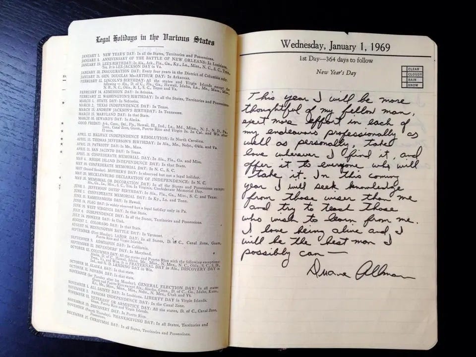 Duane Allman’s January 1, 1969 diary entry